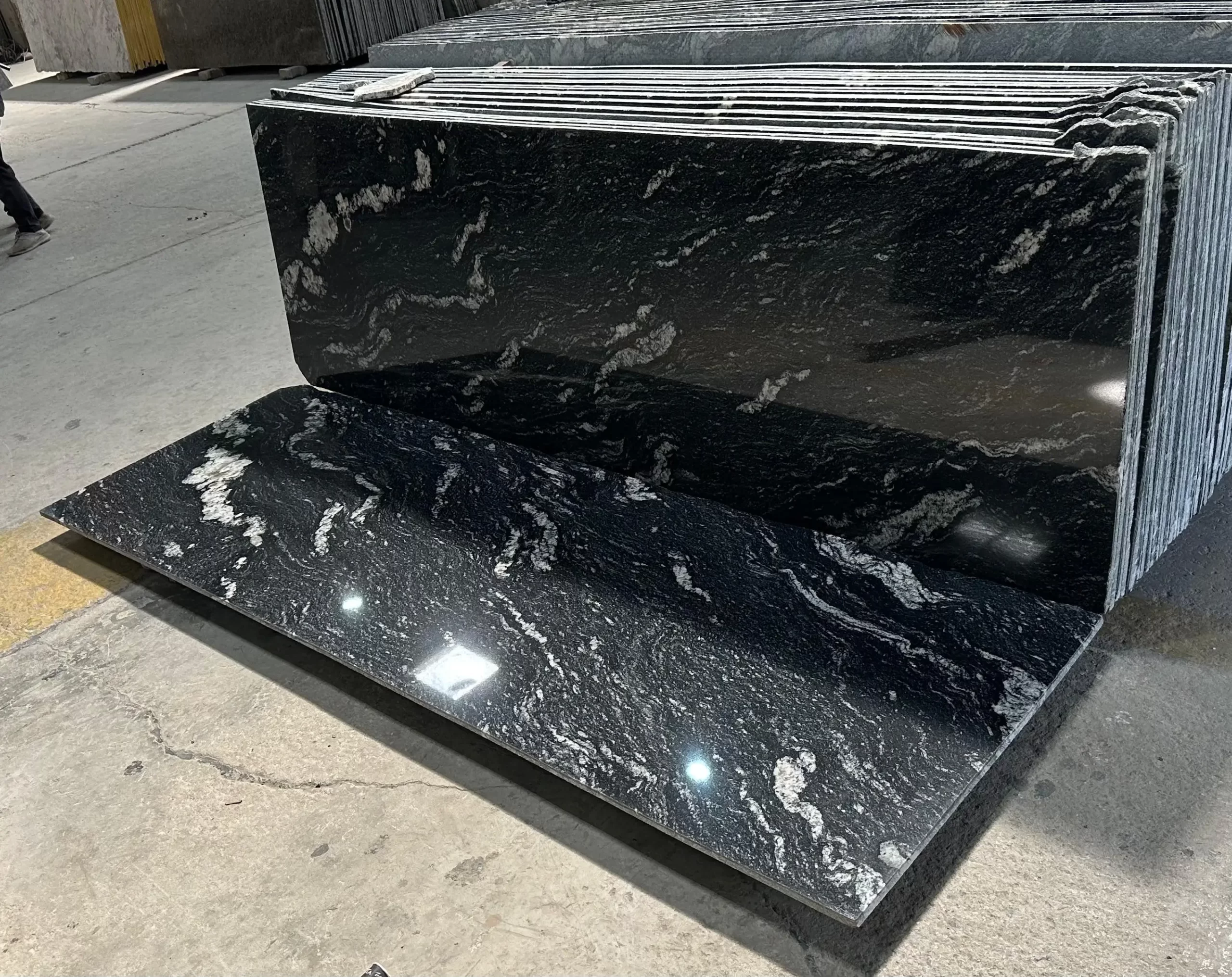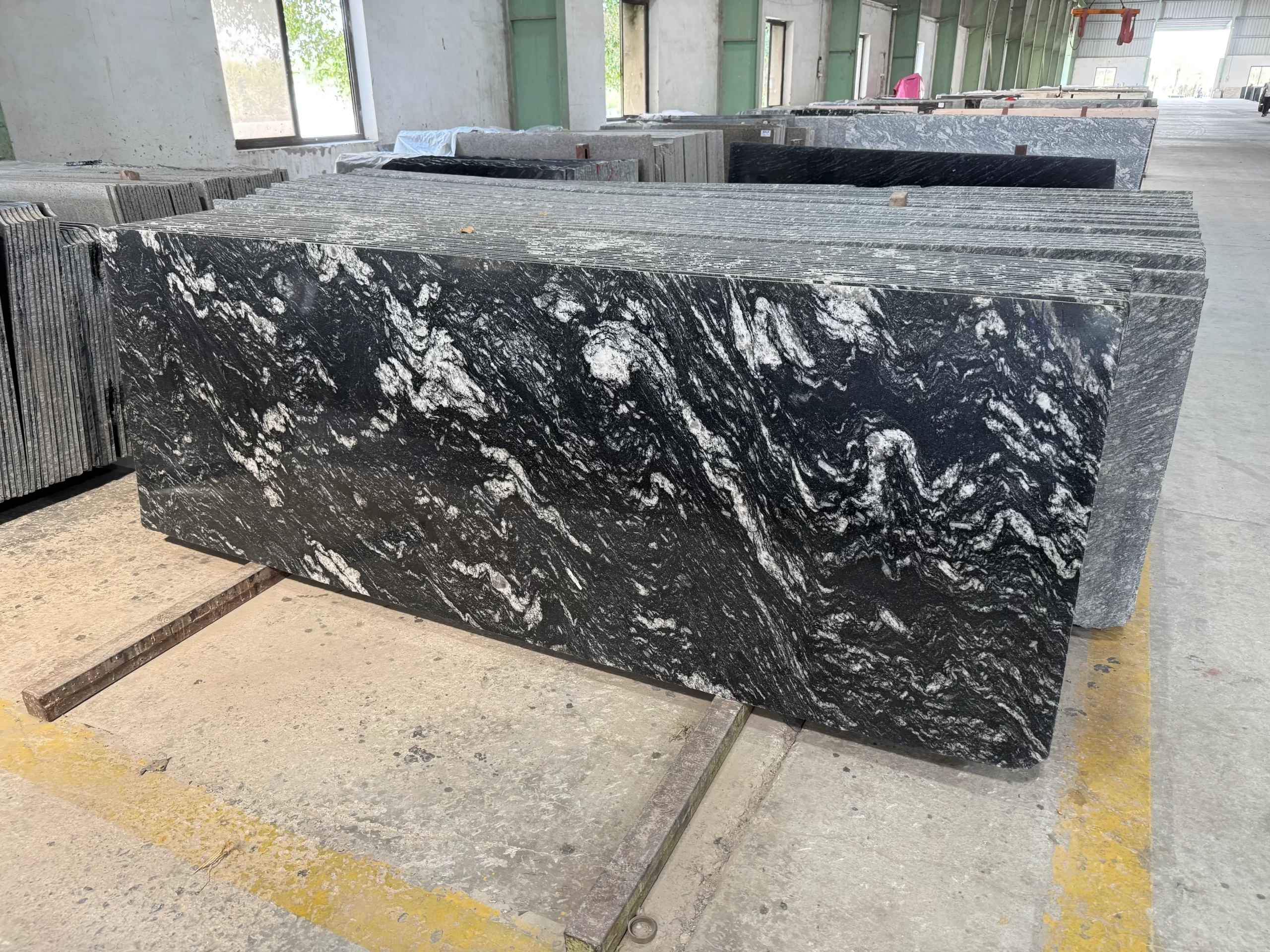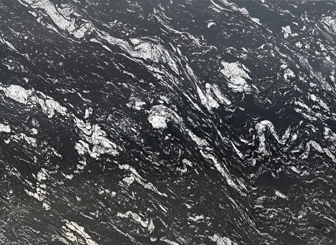 The appearance of Black Forest Granite shows its dark black background covered with unique snow white patterned stripes. The stone got the name from its forest like natural pattern that resembles dense forest branches. Every slab reveals variations making all installations unique as their appearance remain different from one another.