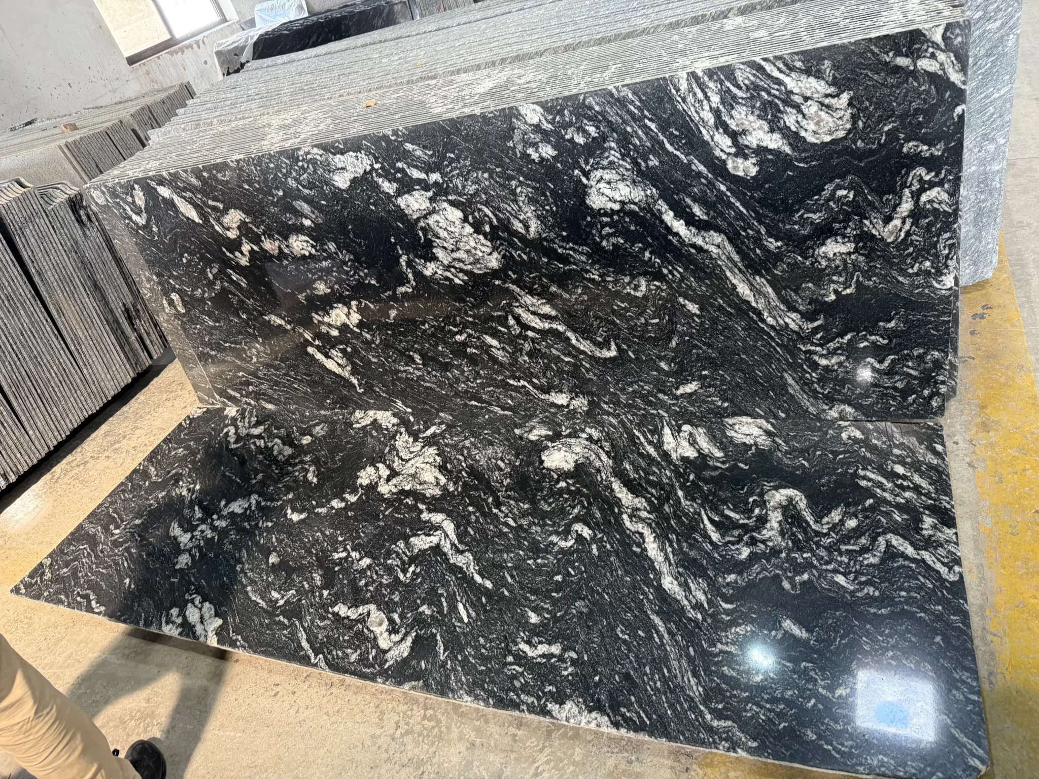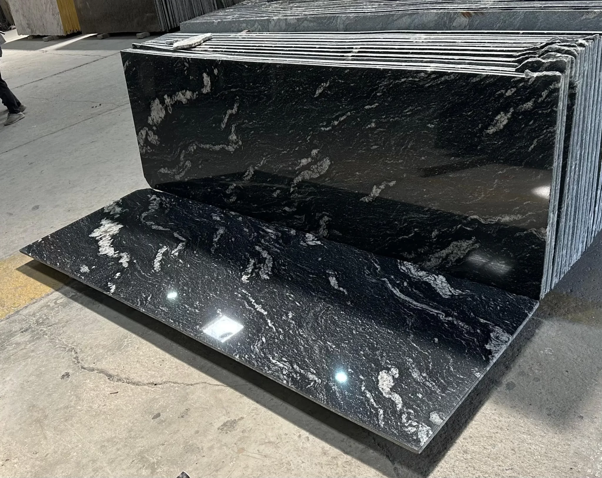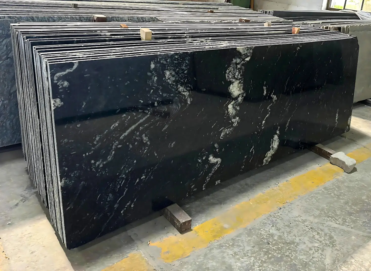 The appearance of Black Forest Granite shows its dark black background covered with unique snow white patterned stripes. The stone got the name from its forest like natural pattern that resembles dense forest branches. Every slab reveals variations making all installations unique as their appearance remain different from one another.