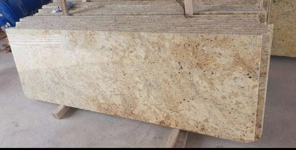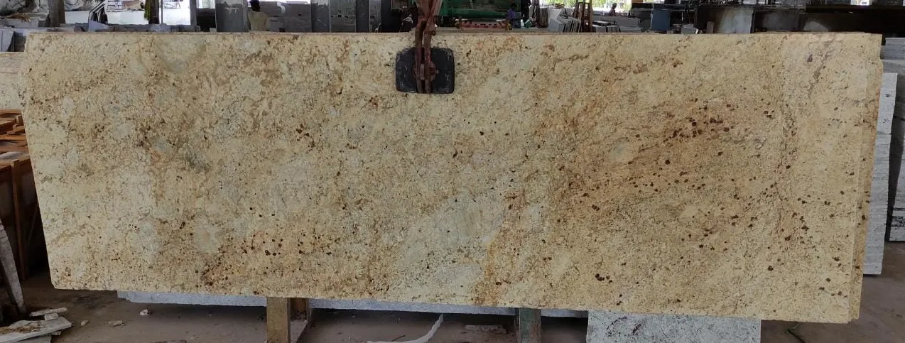 Colonial Gold Granite is different from slab to slab, with changes in tint and veining that have been put there by nature. Various stone slabs exhibit different degrees of movement that determine their potential uses either as visible counter surfaces or feature walls.