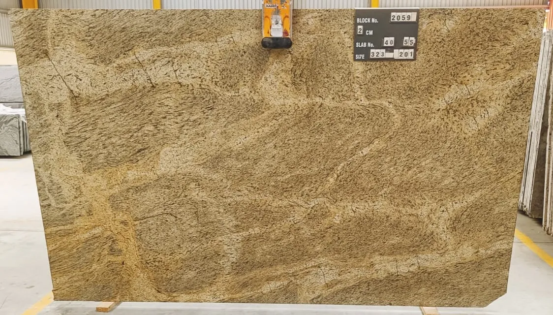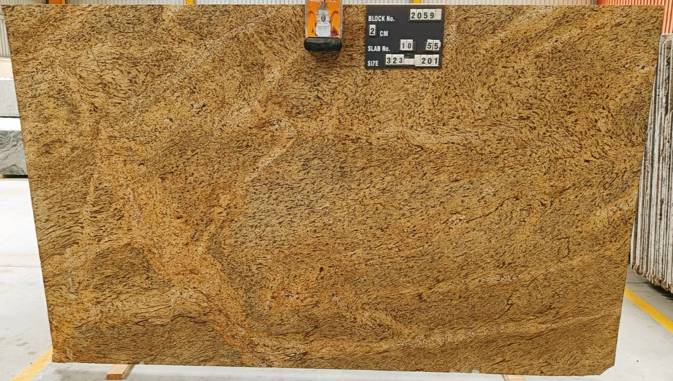 Kashmir Gold Granite does not only catch the eye with its unique earthly tones. The versatility in design it offers makes it an ideal option to quartiles or place me of round hot. These unique features go with the stone’s exceptional enduring capabilities. This granite can withstand the challenges of high traffic areas and constant heat exposure without losing its timeless charm. Further, New Kashmir Gold Granite’s non-porous qualities easily resist stains.