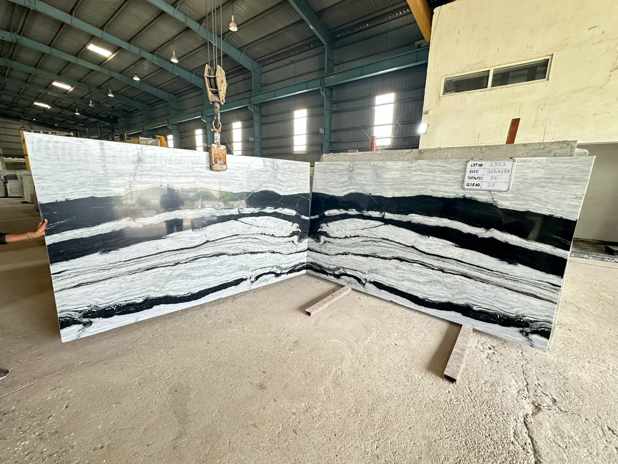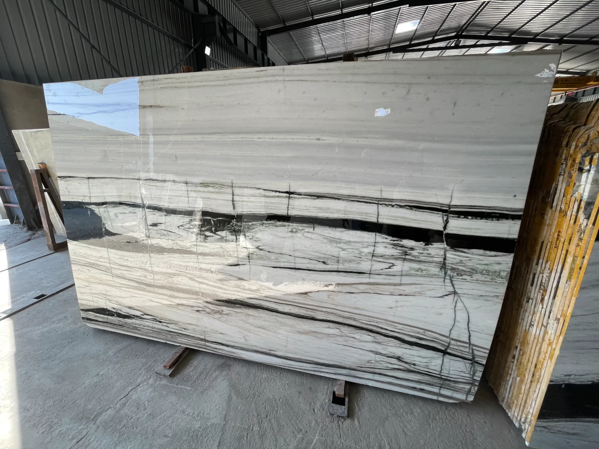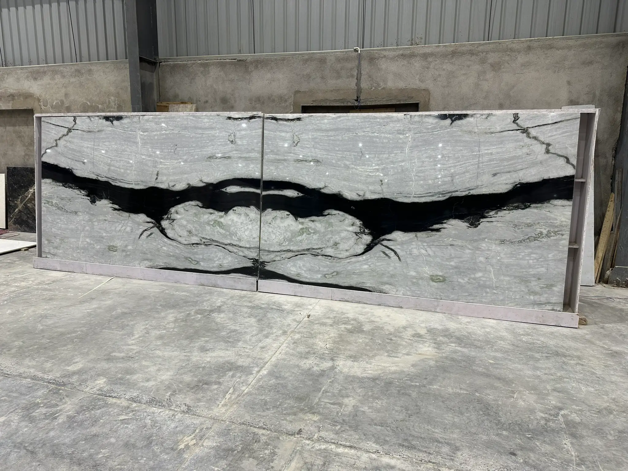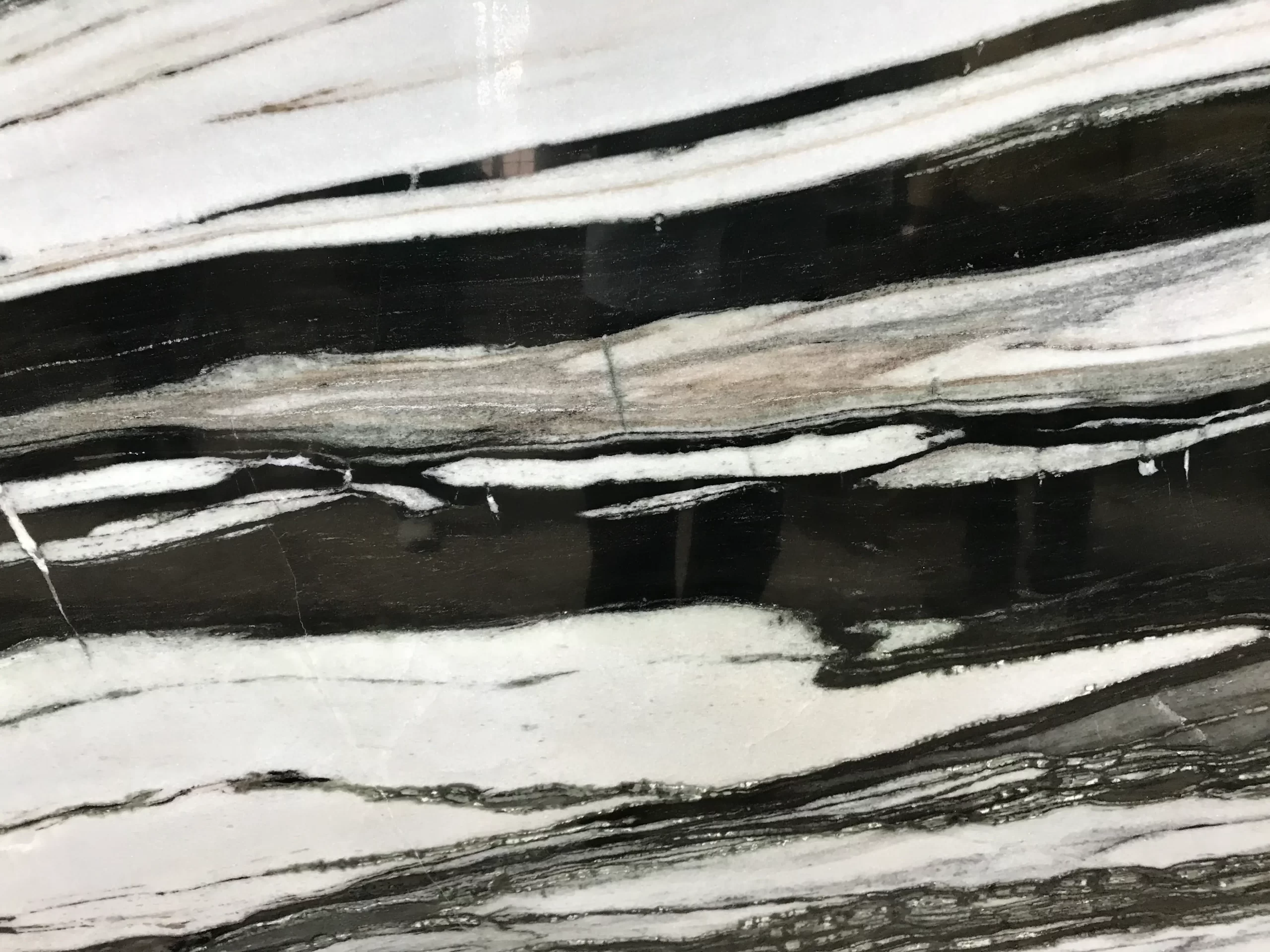 ⮚ Panda White Marble has a bright white background with a natural pattern of bold black lines. This creates an eye catching contrast between the black and white.